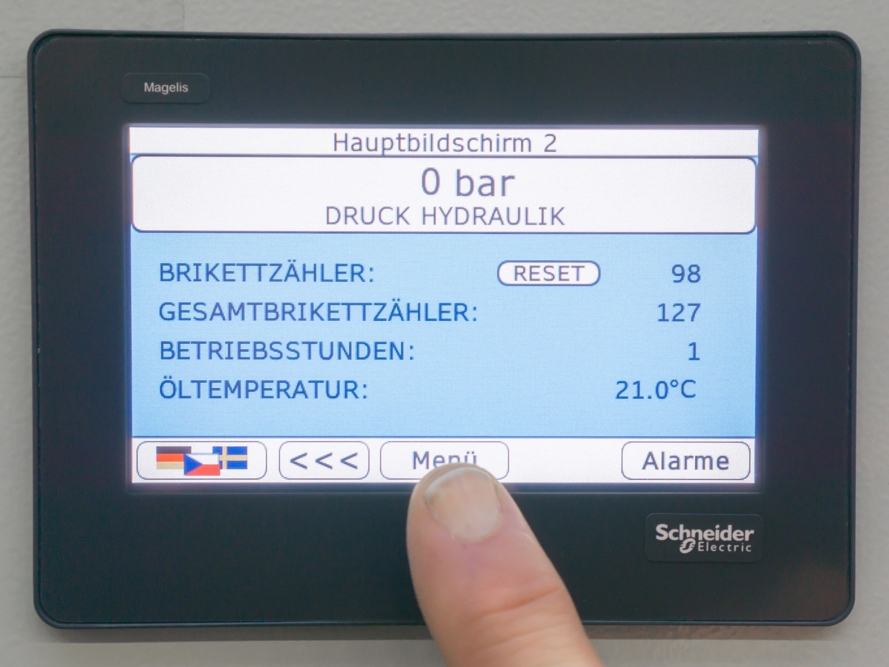 All inklusive Serienausstattung Betriebsstunden- und Brikettzähler, Pressdruckanzeige, Temperaturüberwachung, Brikettlängenautomatik und vieles mehr | Zuverlässige Beschickung Der großzügig dimensionierte Schneckentrog und die stabile Dosierschnecke sorgen für kontinuierliche Materialzufuhr | |