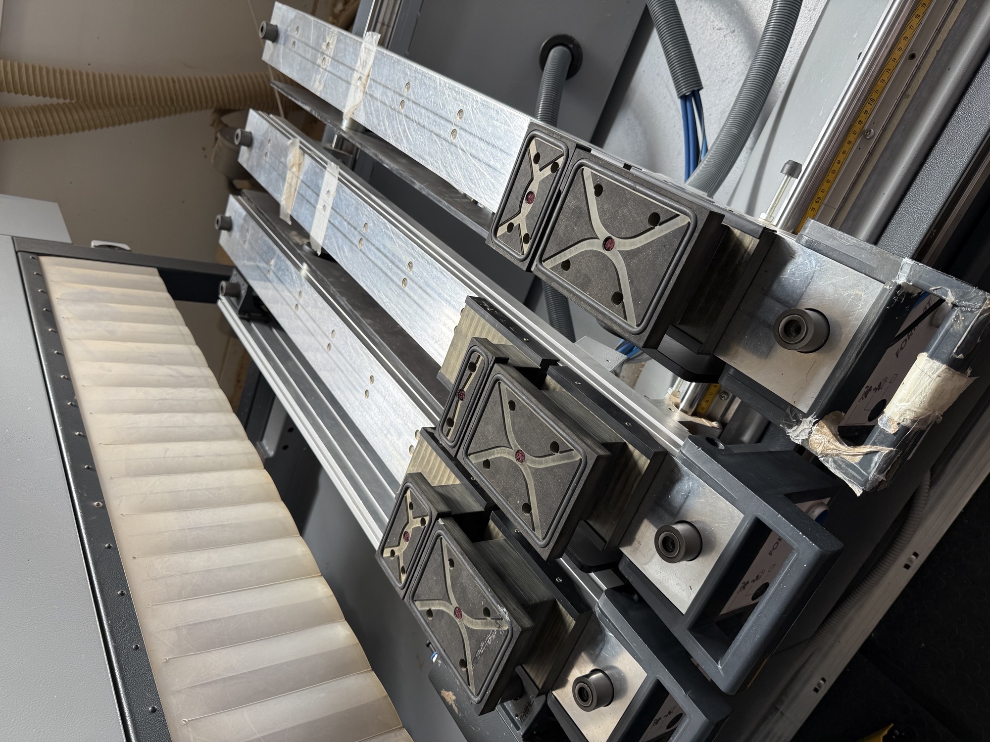 12-Fach Linear-Wekzeugwechsler links am Maschinenständer + Pickup Platz