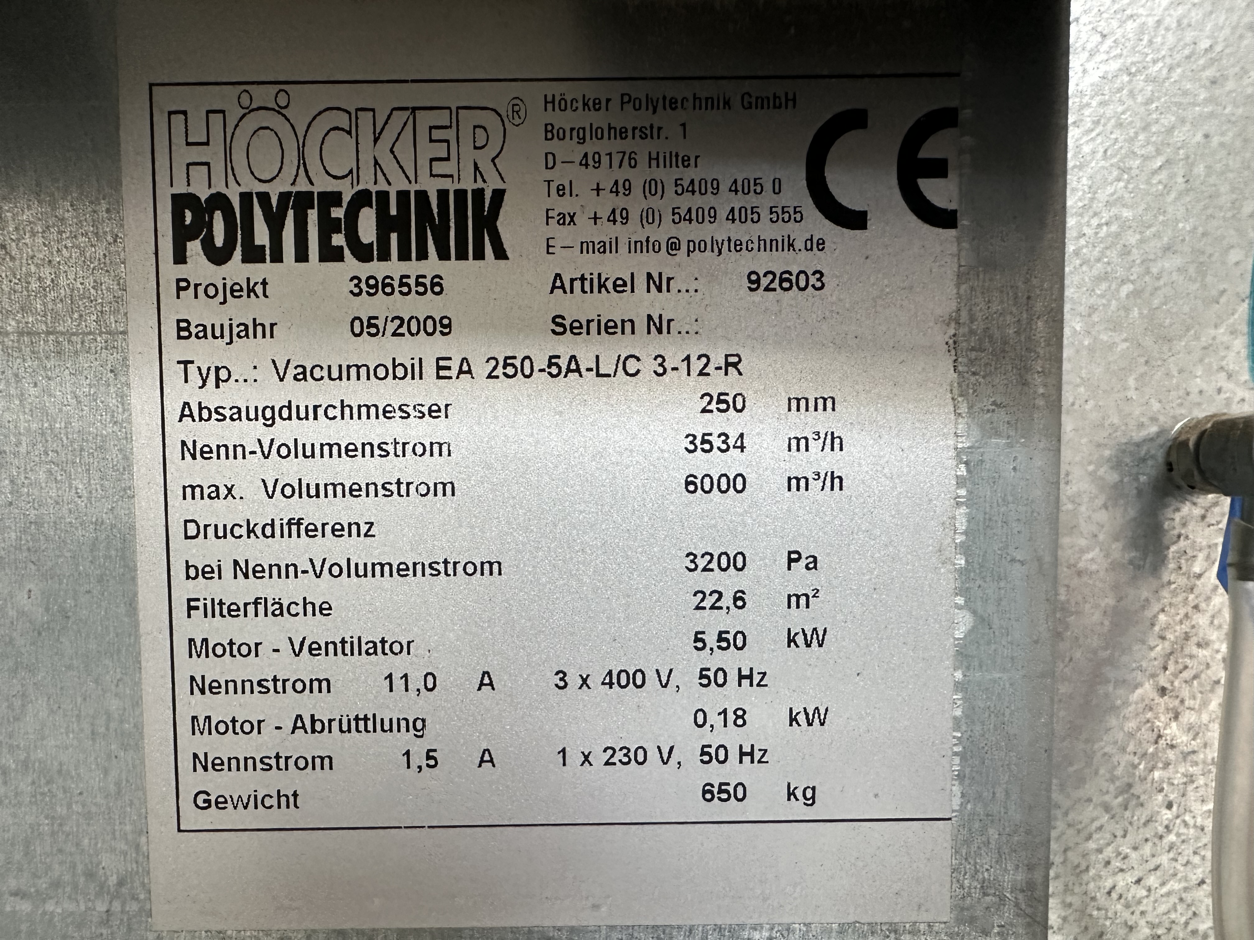 Produktinformationen "Höcker Polytechnik Vacumobil EA 250-5A-L/C 3 2009"